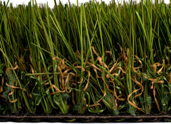 Césped decorativo 40mm de altura, bicolor Nervio central , hilo en forma de C y de 12 cabos en vez de 8 que le mas densidad y resistencia a la pisada, muy acogerdor, bajo brillo. Resitencia rayo UV , resistencia al fuego y gran permeabilidad 60l x min x 100cm2